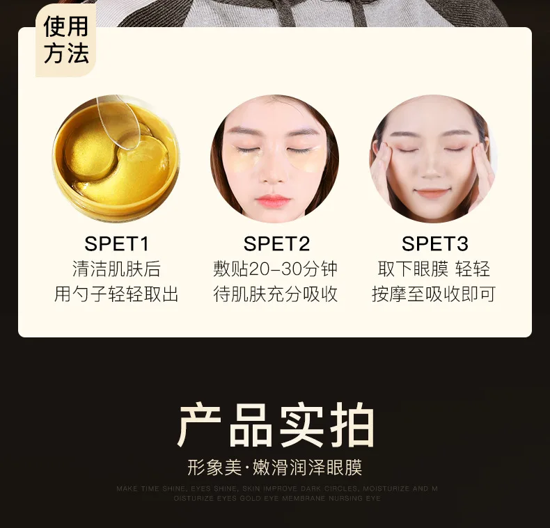 Masque pour les yeux en collagène or 24K, 60 pièces