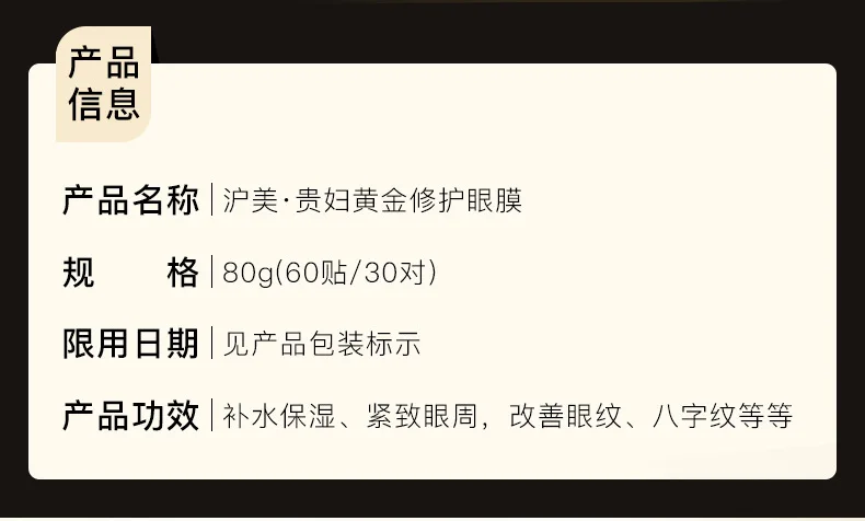 Effets:Anti-boursouflure cernes hydratant Anti-âge apaise les poches des yeux adoucit la peau