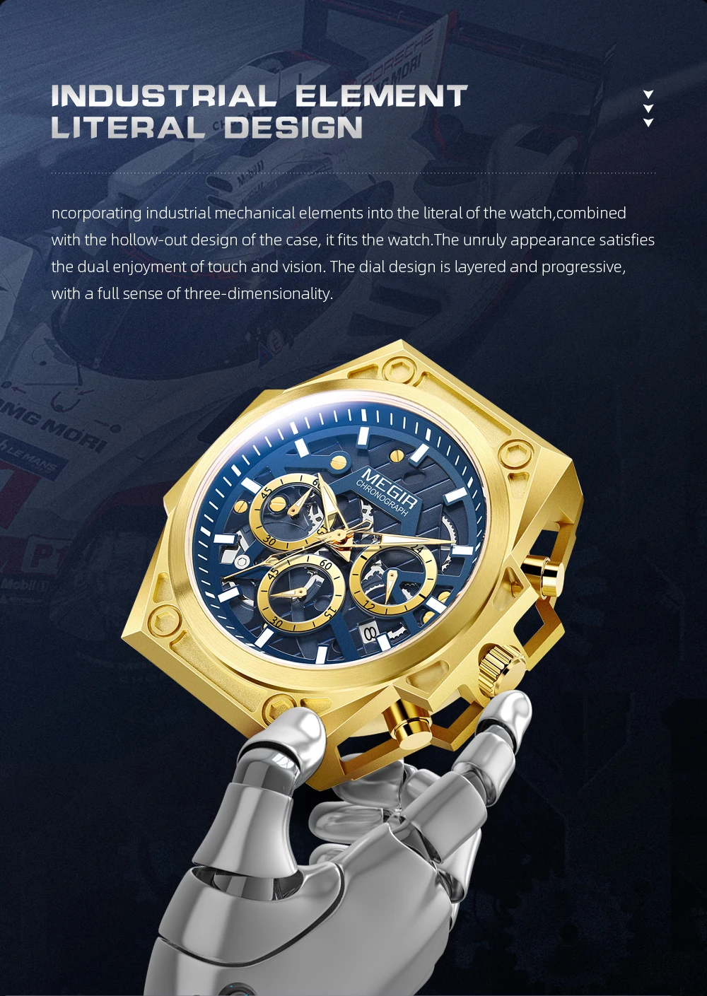 La montre MEGIR pour hommes incarne le luxe et l'originalité, alliant fonctionnalité et esthétique pour une expérience horlogère exceptionnelle.