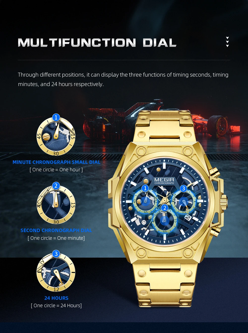 ⌚ MEGIR - Montre Luxueuse pour Hommes : Chronographe Original en Quartz