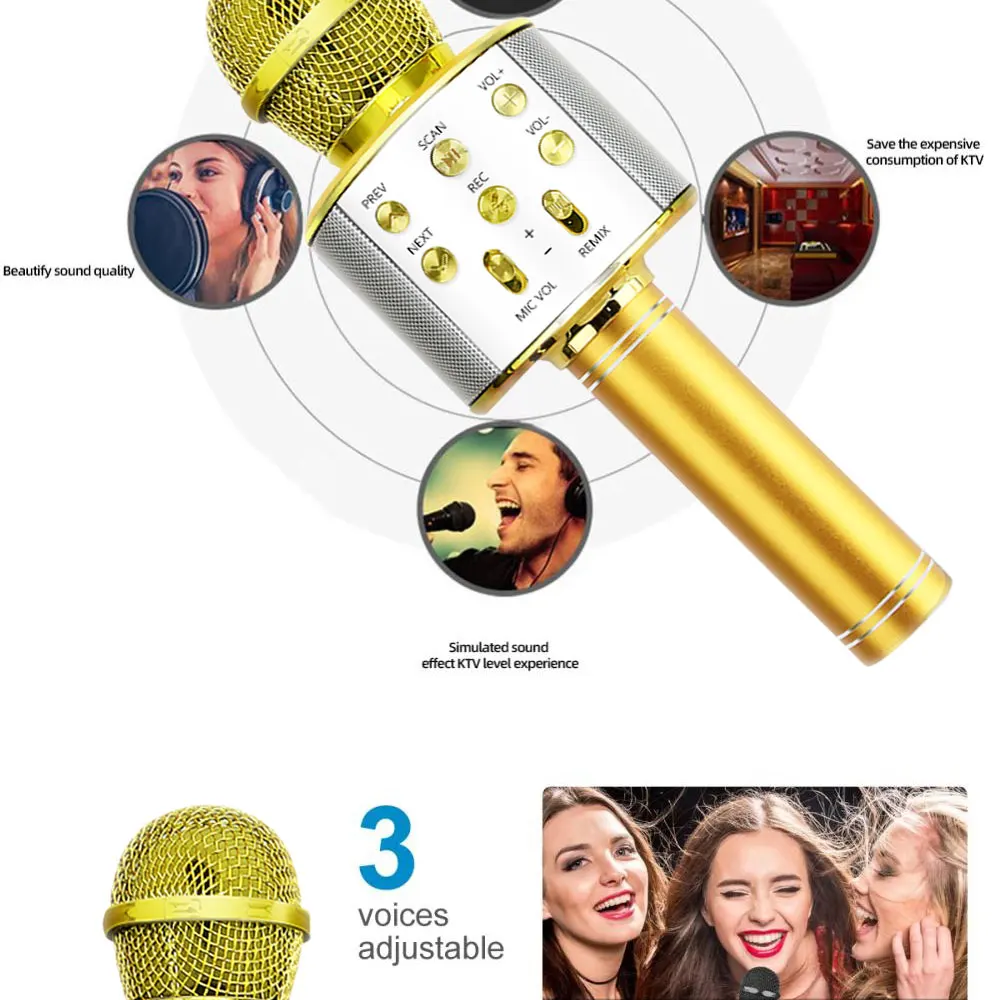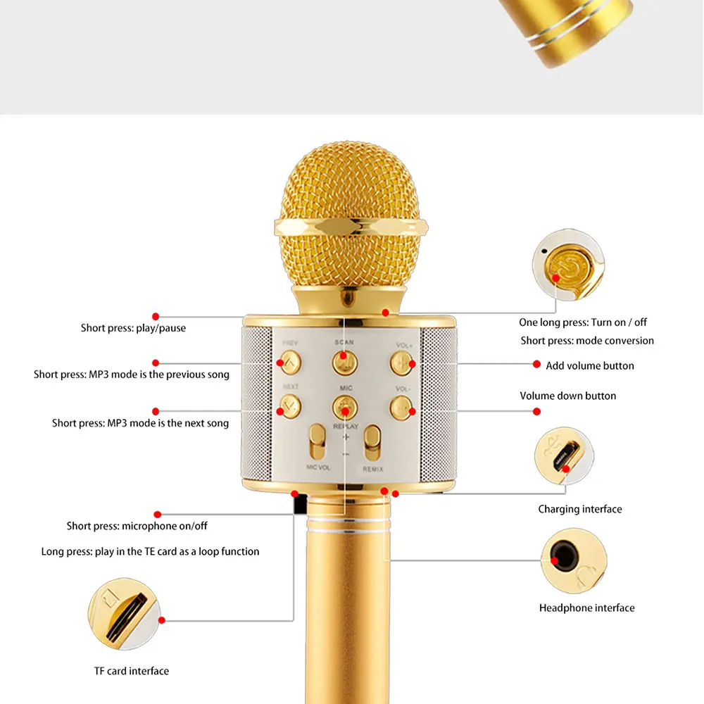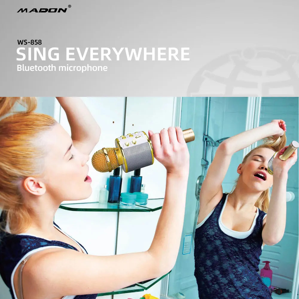 Microphone karaoké sans fil WS-858 Bluetooth déterminer haut-parleur portable