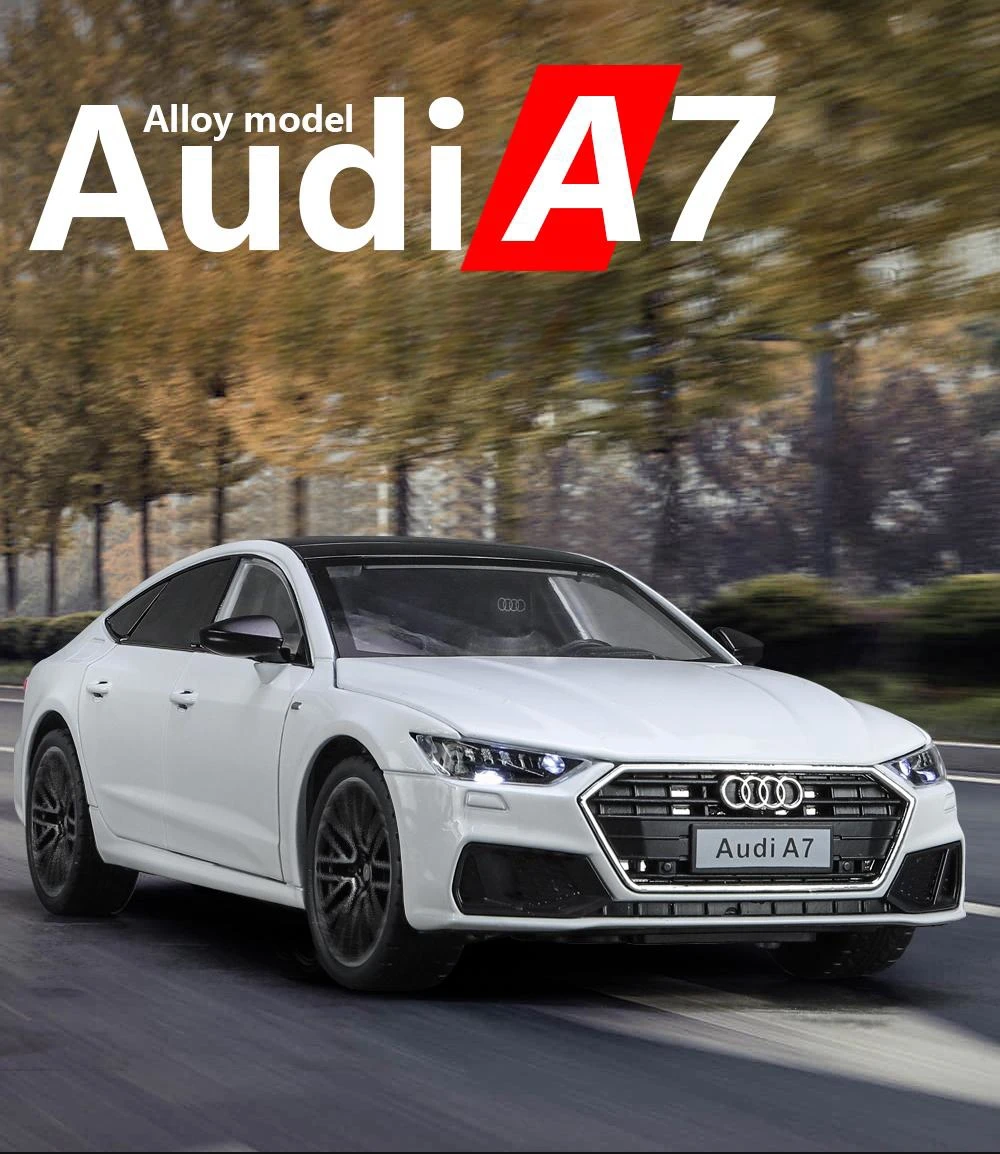 Modèle de voiture Audi A7 1:24, véhicule en alliage moulé sous pression, porte miniature avec son et lumière