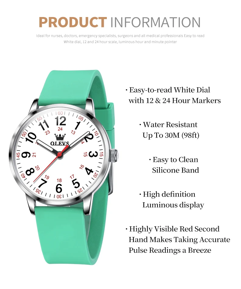 Commandez dès maintenant la Montre-Bracelet à Quartz OLEVS et faites confiance à son design adapté aux besoins médicaux. Optez pour cette montre pratique et élégante pour rester à l'heure tout en exerçant votre profession. ⌚