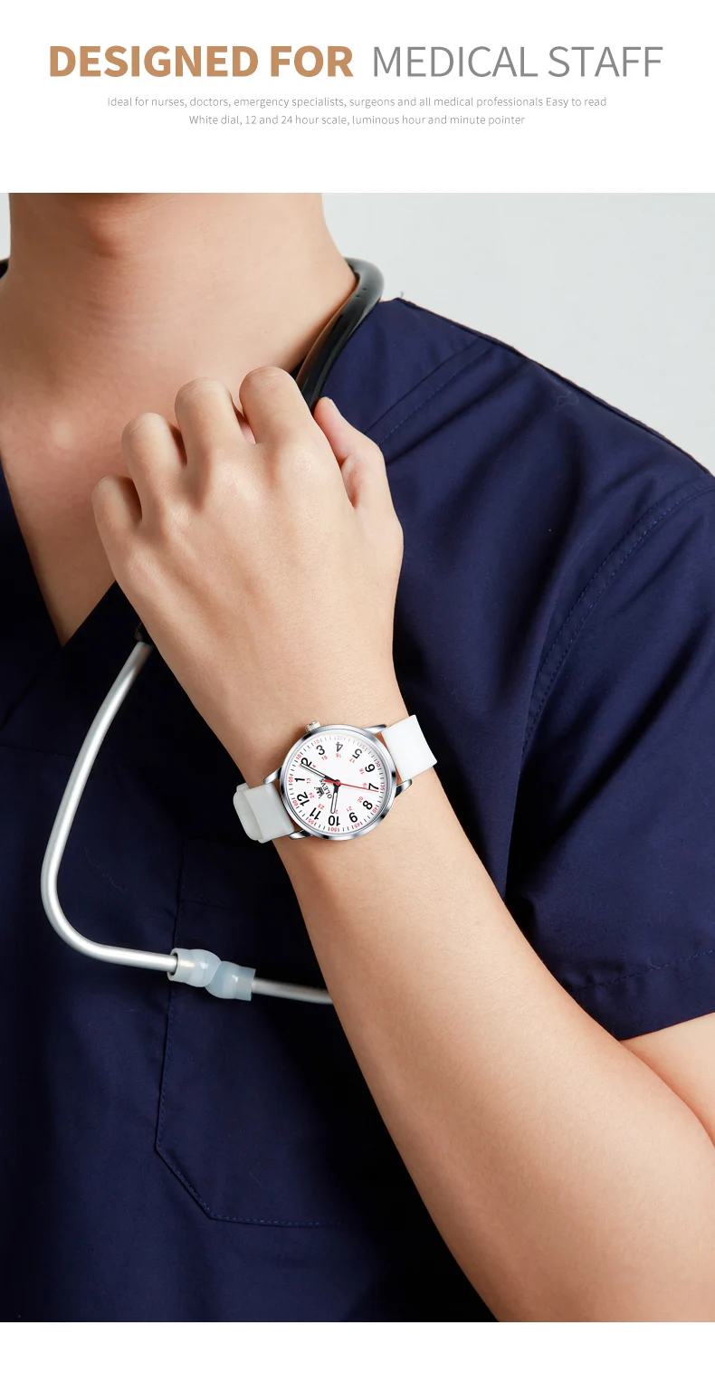 Cette montre est conçue pour répondre aux besoins des médecins, infirmières et professionnels de la santé qui recherchent une montre fiable et fonctionnelle. Elle vous accompagnera tout au long de votre journée de travail avec précision.