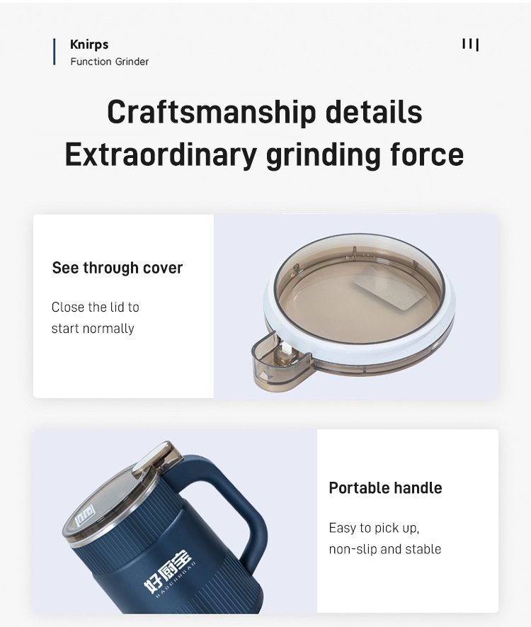 Dotée d'une capacité compacte, notre solution vous permet de moudre efficacement même de petites quantités d'ingrédients en une texture fine. Grâce à son design astucieux, cet outil peut traiter de petites quantités avec la même performance de broyage exceptionnelle que pour des quantités plus importantes.