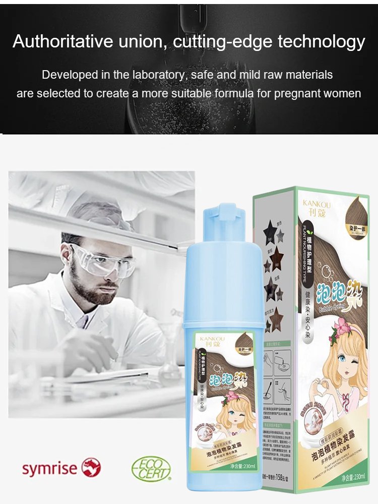🔥【Produit de teinture capillaire 3 en 1】 : Un produit, trois utilisations. Le shampooing Plant Bubble Hair Dye peut être employé non seulement comme teinture pour cheveux, mais également comme shampooing et après-shampooing, ce qui en fait une solution économique.