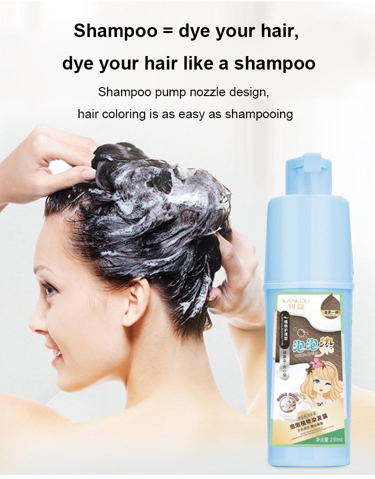 🔥【Teinture capillaire à bulles d'extrait naturel de plante】 : Ce produit est simple et pratique à utiliser. Vous pouvez teindre les cheveux à la maison en utilisant simplement des gants et en l'appliquant de la même manière qu'un shampooing normal. Attendez seulement 10 minutes pour obtenir la couleur désirée des cheveux.